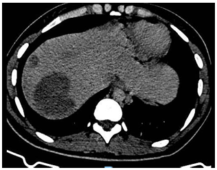 Imagen 2. TC abdomen (corte a nivel superior) al diagnóstico
