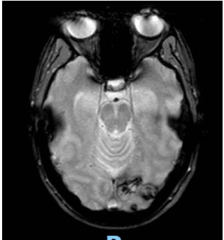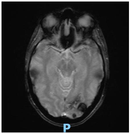 Posteriormente se solicita interconsulta al Servicio de Oncología y se realiza RMN de cerebro (Imagen 3) descartándose secundarismo en este órgano (se informó área de aspecto secuelar con depósitos de hemosiderina en secuencia de gradiente a nivel de la corteza occipital izquierda. La misma no presenta áreas de restricción o realces tras la administración de contraste ev.)